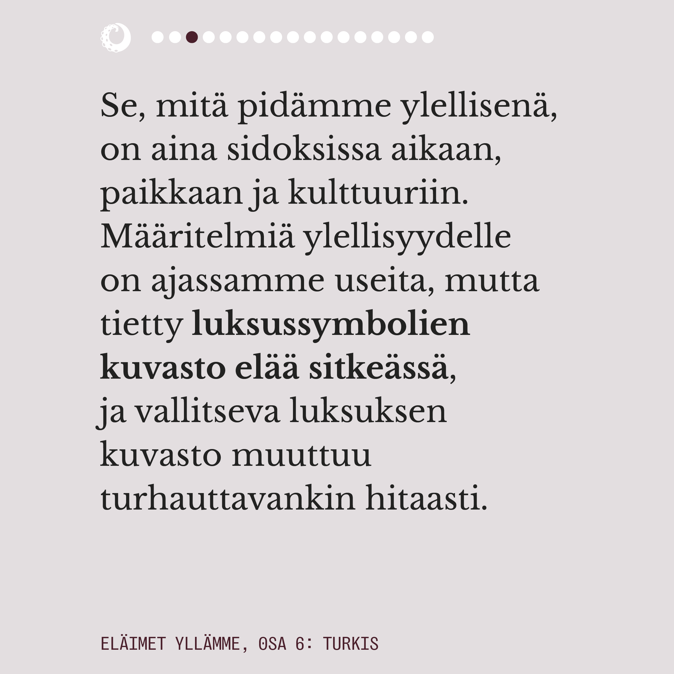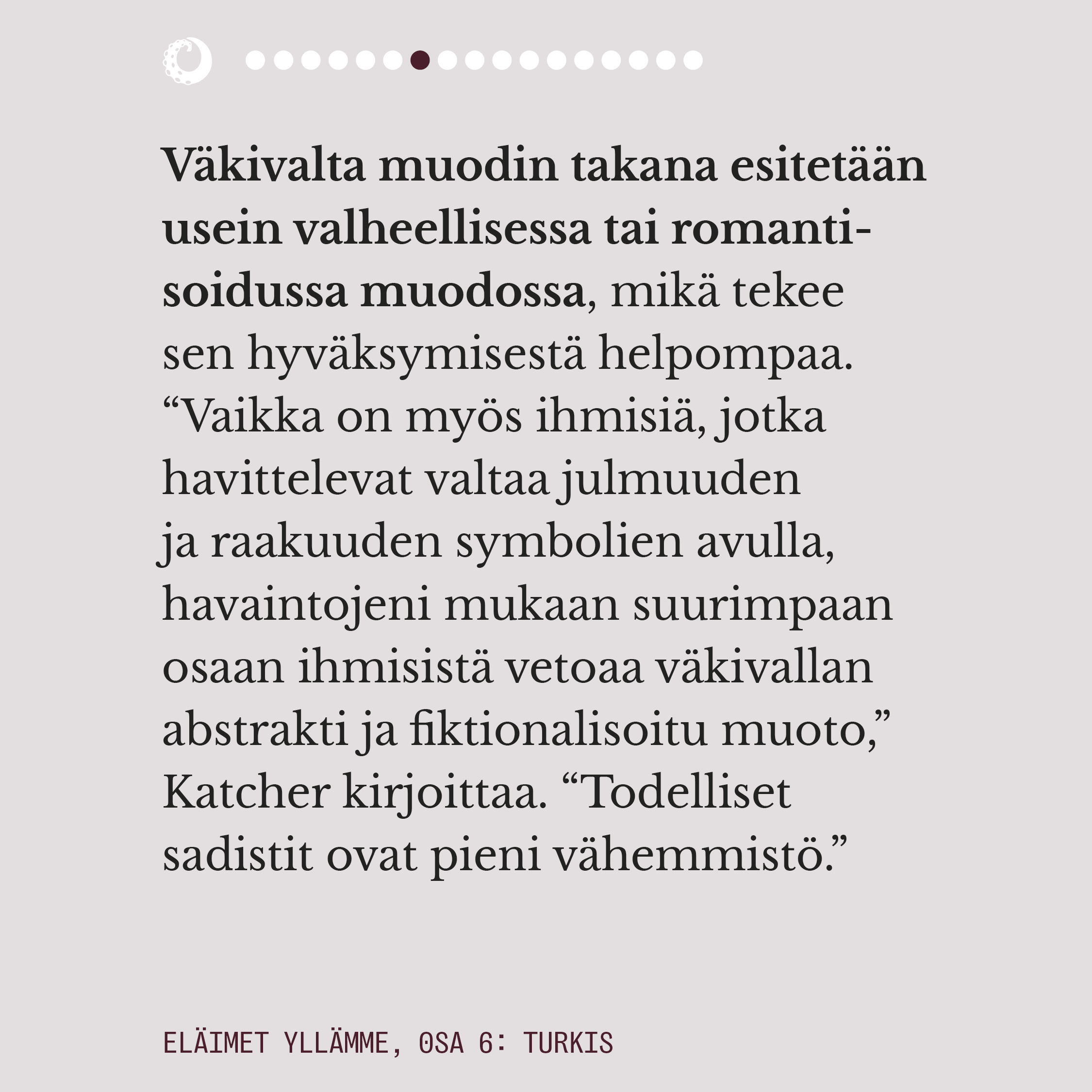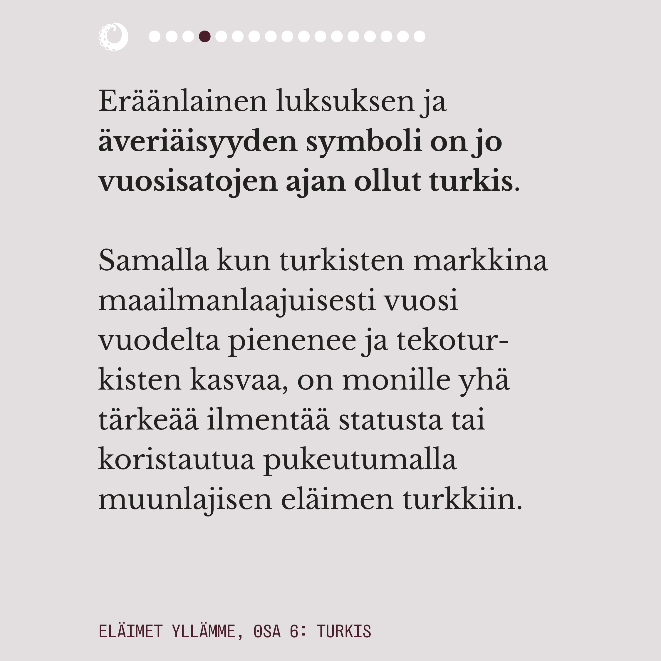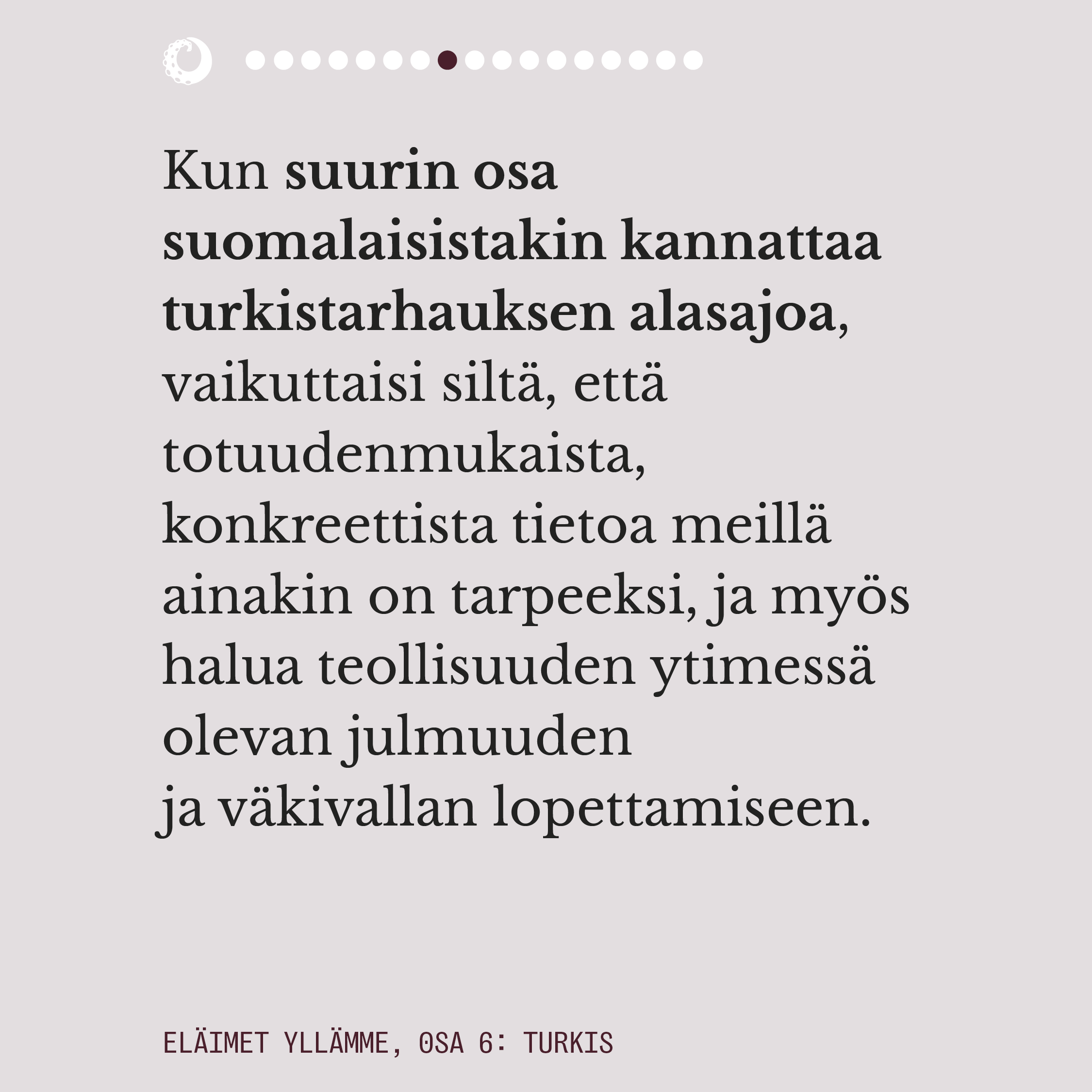 Ensimmäisessä osassa pohdimme muun muassa sitä, miten eläimiin pukeutuminen näyttäytyy yhteiskunnassamme luonnollisena. Lue juttu kokonaisuudessaan alta kuvaruuduista.