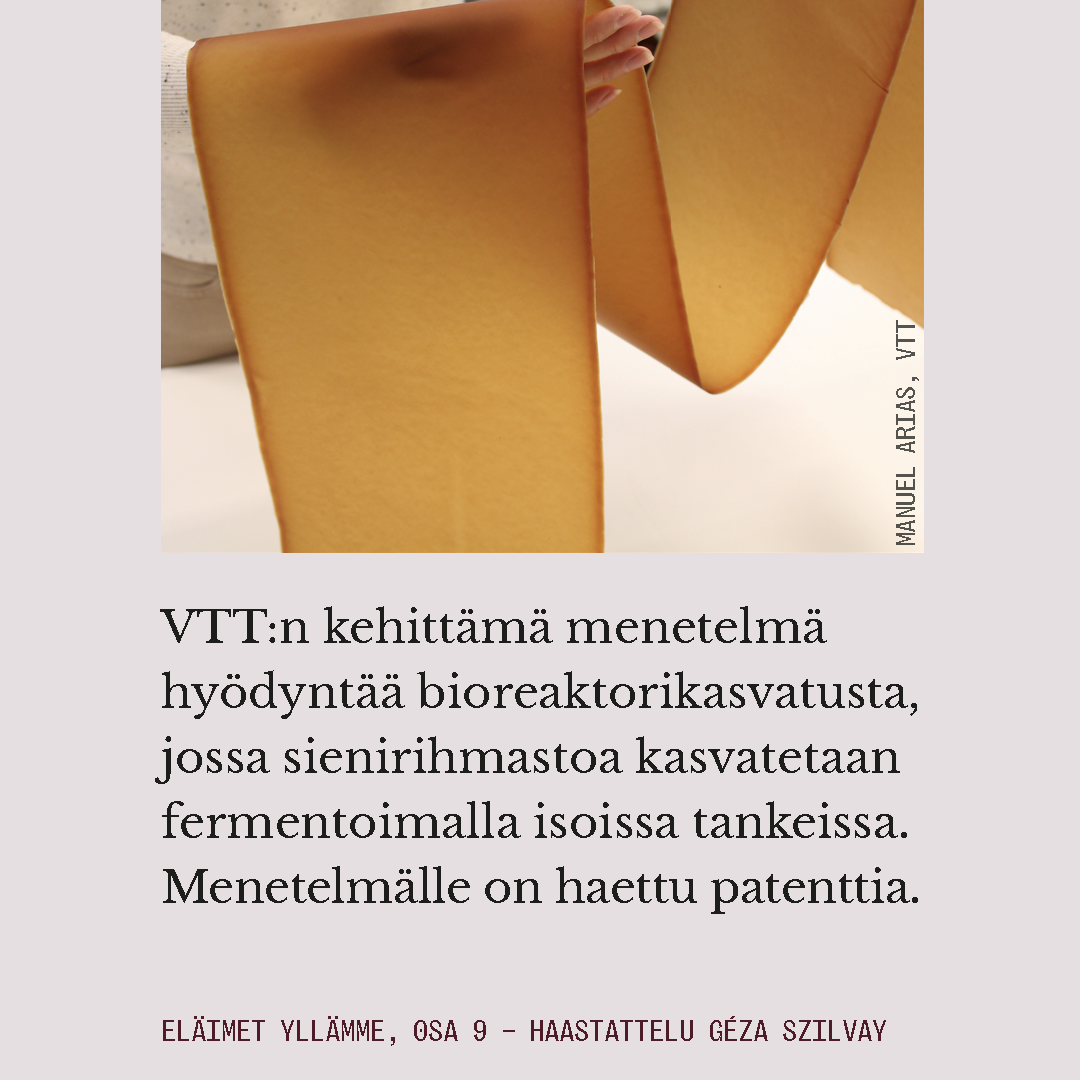 “Halusimme kehittää nahkamaisen materiaalin, joka ei korvaisi vain eläinnahkaa, vaan myös synteettisen nahan,” Szilvay sanoo.